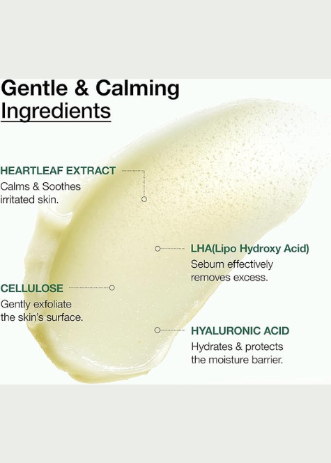 Ovaj piling-gel učinkovito uklanja mrtve stanice kože i nečistoće začepljenih pora, dok istovremeno hidratizira i umiruje zahvaljujući ciljanim aktivnim sastojcima. Sadrži LHA (lipohidroksi kiselinu) – četvrti-generacijski hidroksi-acid koji razbija nečistoće i višak sebuma, te 10 000 ppm ekstrakta srcolisne biljke (Heartleaf / Houttuynia cordata) plus BioDtox blend (ekstrakt aloe leafer, brokula, bioflavonoidi) koji čiste i umiruju.