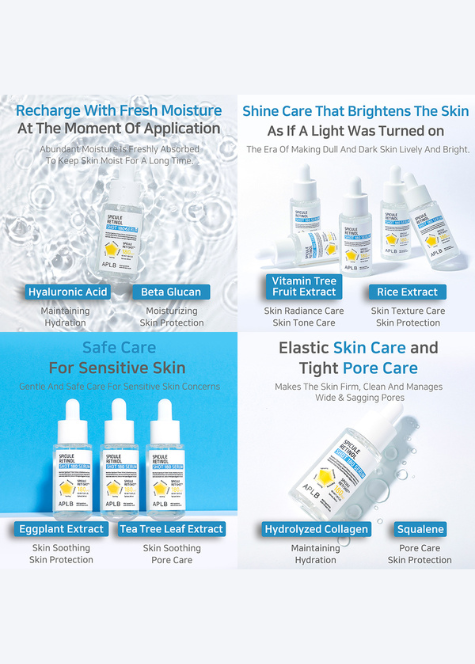 APLB Spicule Retinol Shot 180 Serum razvijen je za kožu kojoj je potrebna intenzivna obnova i zaglađivanje. Formula sadrži tehnologiju mikro-spikula („180 shots of Spicule Retinol”) koja poboljšava apsorpciju aktivnih sastojaka, potiče staničnu obnovu te poboljšava elastičnost i mlađi izgled kože.