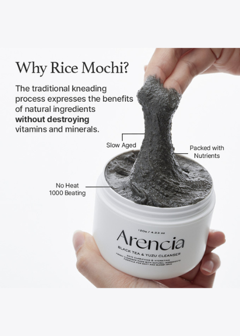 Arencia Black Tea Rice Mochi Cleanser je nježni 2-u-1 čistač i maska koji uklanja nečistoće, višak sebuma i ostatke šminke te istovremeno zaglađuje teksturu kože i daje prirodan sjaj.