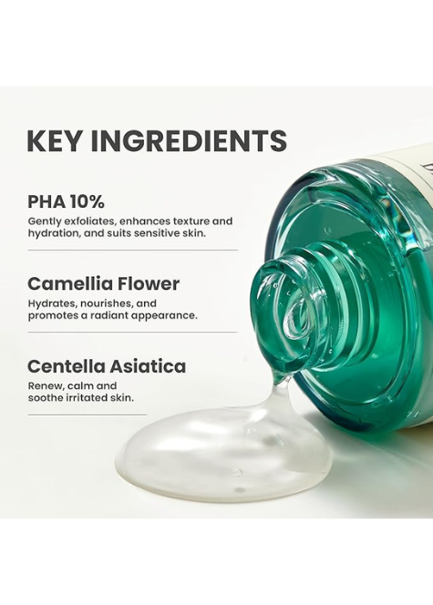 PHA kiseline djeluju blago i hidratantno, što ovaj piling čini savršenim i za osjetljivu kožu. Zahvaljujući ekstraktima papaje, krastavca, zelene jabuke, zelene šljive i centelle asiatice, koža ostaje umirena, nahranjena i meka na dodir.
