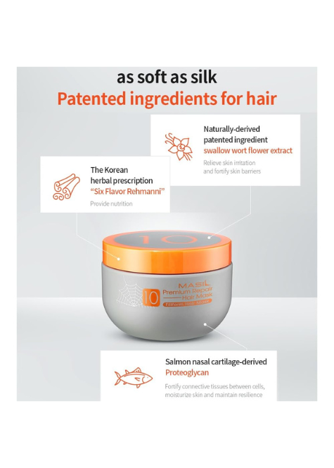 Masil 10 Premium Repair Hair Mask je intenzivna regenerativna maska koja dubinski obnavlja strukturu vlasi, vraća elastičnost i daje kosi vidljivo zdraviji, zaglađen i sjajan izgled već nakon prvog korištenja.