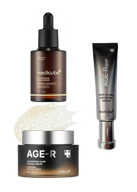 Medicube Age-R Lifting & Glow Set sadrži tri premium proizvoda dizajnirana da pomlade izgled kože i vrate joj elastičnost i sjaj.