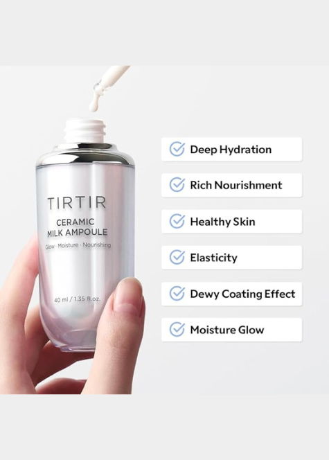 TIRTIR Ceramic Milk Ampoule je tvoje tajno oružje za trenutačno blistavu, porculanski glatku kožu. Ova inovativna ampula intenzivno hidratizira kožu i pruža elastičan, zdravi glow koji traje cijeli dan. Zahvaljujući visokokvalitetnim sastojcima, savršeno se stapa s kožom, dubinski je hrani i štiti.