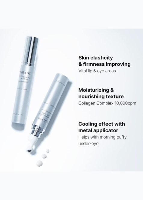 TIRTIR Collagen Lifting Eye Cream je učvršćujuća krema za područje oko očiju koja pomaže zagladiti bore, poboljšati elastičnost i osvježiti izgled kože.